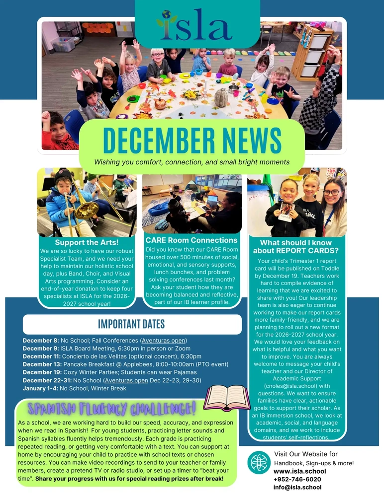 Alongside our December newsletter, I wanted to share some personal thoughts. In both our local and national news right now, there is a strong current of xenophobia and racism, and with that there is a lot of fear in our immigrant, Somali, Latino, and Black communities. Some of us are undoubtedly following text and social media alerts of increased ICE presence in Minneapolis, Richfield, and Bloomington. Some of us are worried for family and friends, and even at ISLA some families have chosen to uproot established lives and leave Minnesota. And frankly for some of us, it's easy to tune out of hard truths our neighbors face as the crush of daily life and holiday plans are upon us.